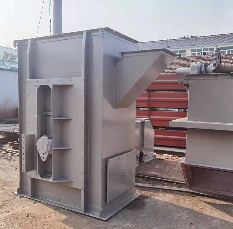 4、提升機的鏈條及料斗:鏈條為圓鋼焊接環(huán)鏈。料斗用螺母定在鏈條的接頭上。不同高度的斗提機現(xiàn)套相應數(shù)量的鏈條、接頭、及料斗。